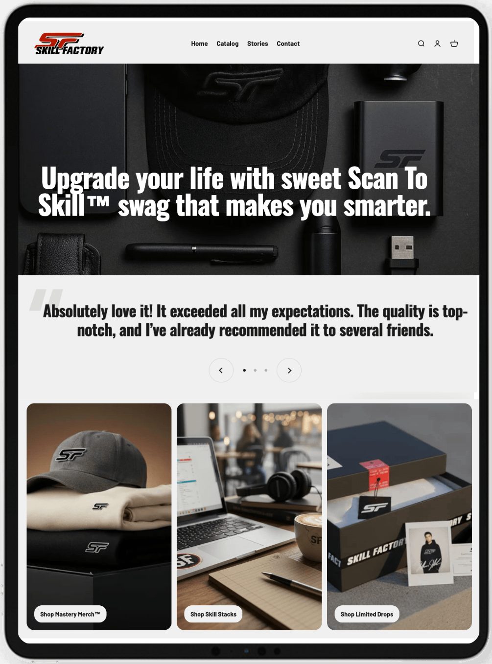 Limited edition Mastery Merch™ drops with Scan to Skill™ tech that unlock signature skills, instant rewards & members-only experiences with elite Luminaries.Mastery Merch™ isn't just smarter swag – it's Skillwear™– a wearable trophy of the skills you’ve earned and the achievements you’ve unlocked.